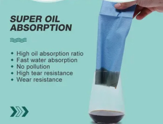| Zeer efficiënte waterabsorptie en olie -verwijdering | Industriële wip jumbo -rol heeft een hoge waterabsorptie en olieverwijderingsmogelijkheden, die snel vloeibare vlekken kunnen absorberen en olieachtige stoffen kunnen verwijderen |