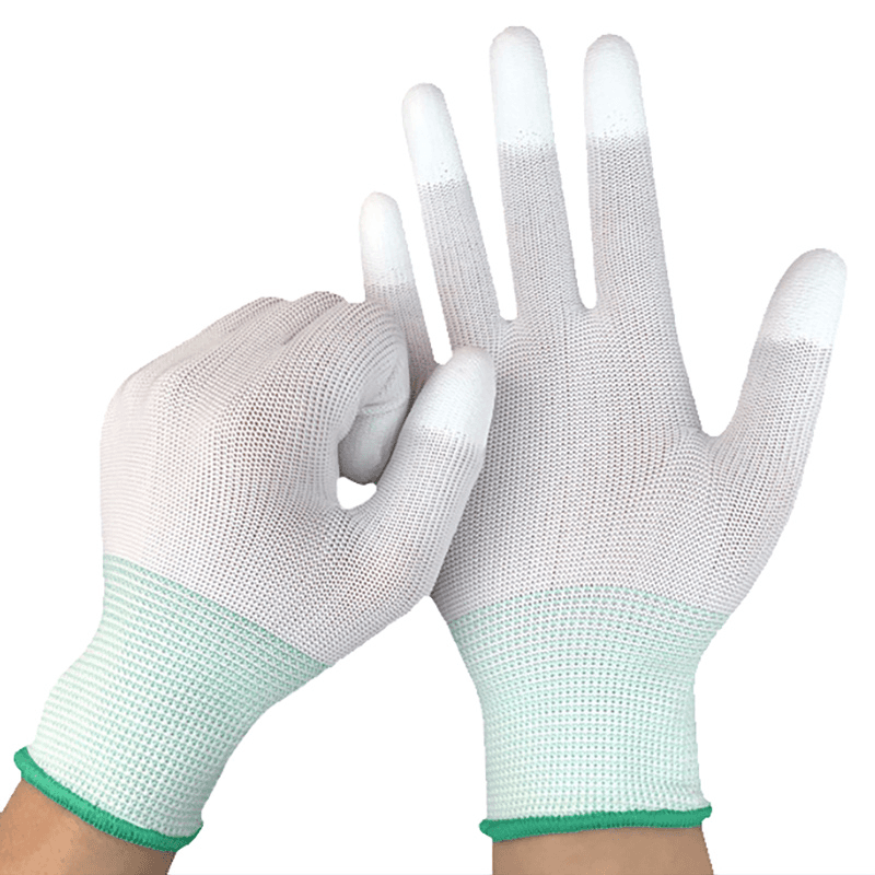 Onze Nylon Finger PU-gecoate handschoenen zijn precies verweven met hoogwaardig nylon garen en hoogwaardige koolstofvezel geleidende garen. Deze combinatie geeft de handschoenen niet alleen extreem hoge slijtvastheid en duurzaamheid, maar biedt ook een uitstekende antistatische functie. De geleidende eigenschappen van geleidende geleiders van koolstofvezel kunnen effectief statische elektriciteitsaccumulatie voorkomen en statische elektriciteitsschade aan gevoelige componenten zoals RAM- en IC -circuits tijdens de assemblage van elektronische producten voorkomen.