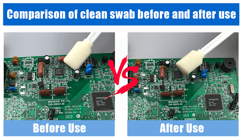 De afdrukkende schuimstaafjes zijn gemaakt van hoogwaardig open-celschuim, dat is ontworpen om gevoelige apparatuur effectief te reinigen. De open-celstructuur van het schuimmateriaal biedt uitstekende reinigingsprestaties, die fijne en grondig fijne deeltjes en vuil kunnen verwijderen, terwijl het risico op residu wordt verminderd. Het schuim is stevig gebonden aan de polystyreenschacht om ervoor te zorgen dat het wattenstaafje niet losmaakt of eraf valt tijdens gebruik.