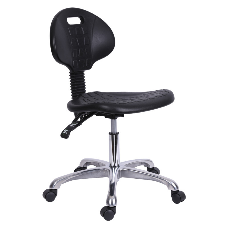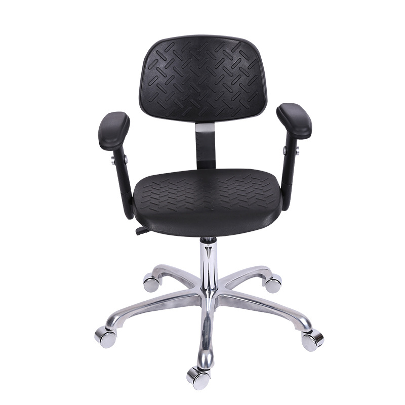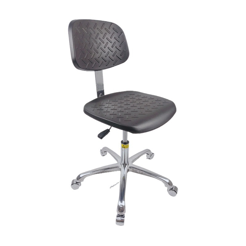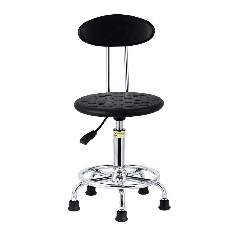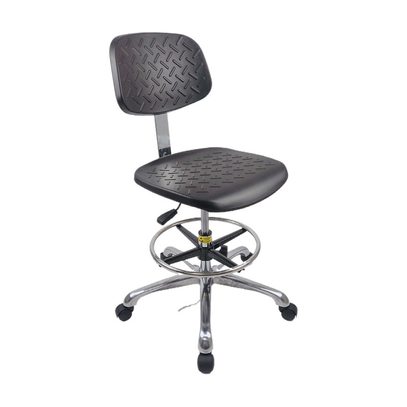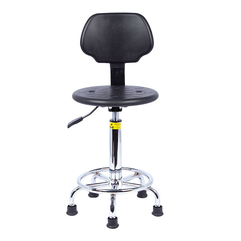 Antistatische stoelen zijn essentiële apparatuur in statische gevoelige gebieden en worden veel gebruikt in industrieën zoals de productie van elektronica, halfgeleiders, farmaceutische producten en precisie-instrumenten. Onze antistatische stoelen zijn gemaakt van hoogwaardige PP-spuitgietmaterialen, gecombineerd met antistatisch PU/PVC-leer en PU-schuim, waardoor hoge sterkte, hoge hardheid en superieure slijtvastheid en corrosiebestendigheid waarborgen. De oppervlakteweerstandswaarde van het materiaal op het oppervlak van de stoel ligt tussen 10^6 en 10^11 ohm, die effectief statische elektriciteitsaccumulatie en afgifte kunnen voorkomen.