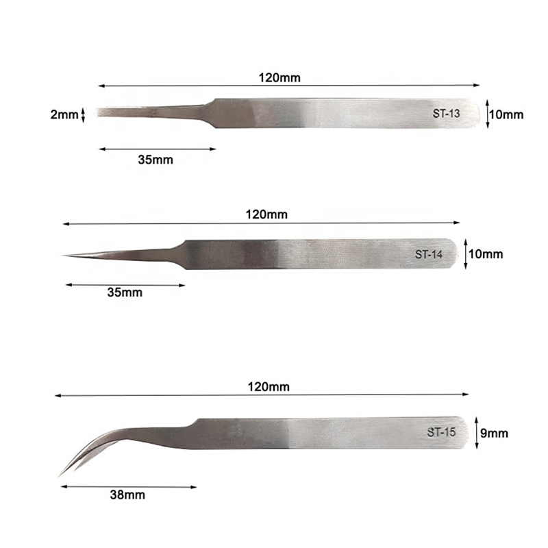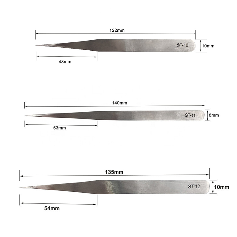 Roestvrijstalen pincet zijn gemaakt van hoogwaardig roestvrij staal, en door fijne verwerking en strikte inspectie zorgen ze voor hun uitstekende prestaties in verschillende veelgevraagde toepassingen. De volgende zijn de belangrijkste kenmerken van onze roestvrijstalen pincet: